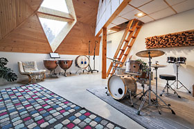 The construction of a Geodesic Dome attached to the main home created an additional solution for Mark to impart years of studio drumming and percussion experience to clients. The StarBird HQ studio has top-notch recording equipment to facilitate impressive-sounding tracks. Mark’s vintage Gretsch and Premier drum sets, Ludwig bass drums, a plethora of percussion instruments, Timpani, and small Marimba are always at the ready.